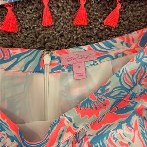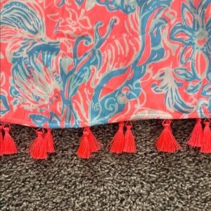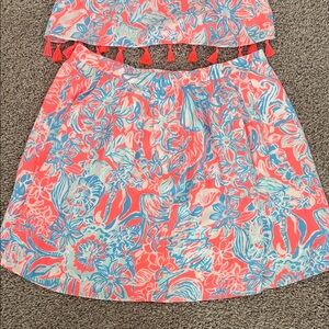 Vibrant skirt set with playful tassels. Features lively pink and blue floral patterns. Perfect for fun outings.