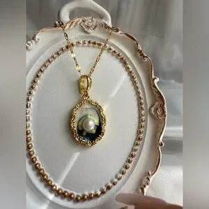 Anthropologie Gold and Blue Cameo Necklace