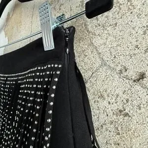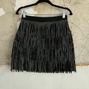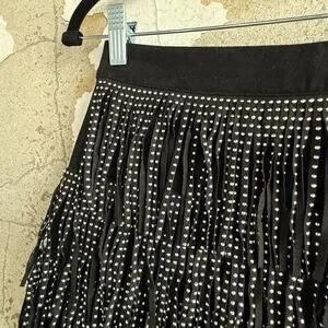 Fringe Mini Skirt Faux Suede Black Studded Western Glam Concert Cowgirl Womens S