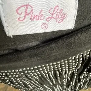 Pink Lily faux suede fringe mini skirt with silver stud detailing and a tiered design that moves as you do. Fully lined, soft-touch fabric with a hidden side zip. The ultimate Nashville or concert night piece she's western glam meets modern edge.