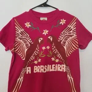 FARM Rio Pink Parrots A BRASILEIRA Cotton Graphic Tee Size XS