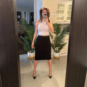 Black Pencil Skirt with Black Leather Waist Band, Judith and Charles, US 2