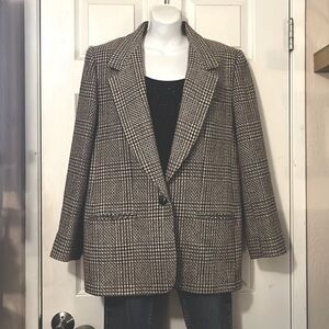 Brown Wool Plaid One Button Vintage Blazer By Georgia Sant’Angelo
