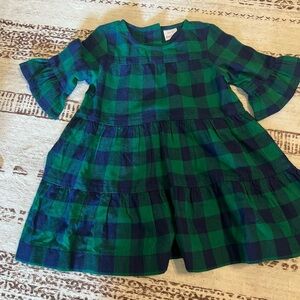 Hanna Andersson buffalo plaid check flannel dress navy green size 3 EUC