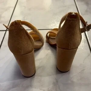 Sam Edelman Velvet Block Heel Sandals - Tan