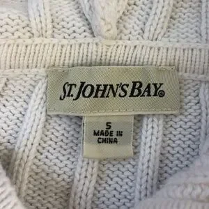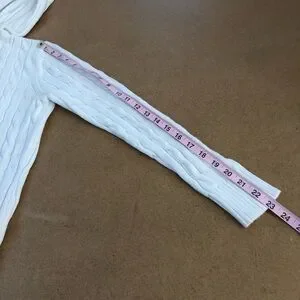 Cozy white St. John’s Bay cable knit cardigan with a hood. Cozy and versatile sweater, perfect for various occasions such as travel, casual outings, or workwear. Made of 100% cotton knit fabric. Perfect for layering. Features front pockets and zip closure. In great condition. Size Small.