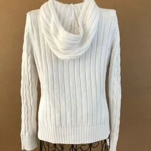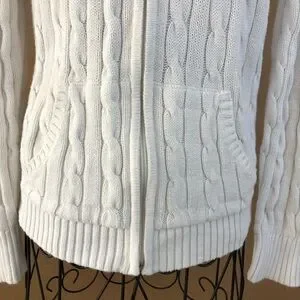 St. John's Bay Full Zip Hooded White Cable Knit Women's Cardigan