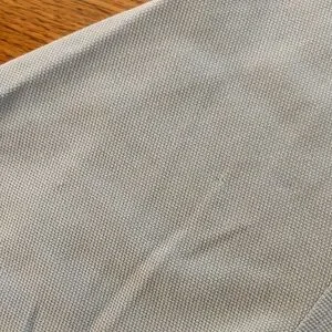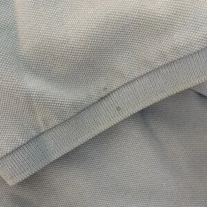 Classic Burberry polo in sky blue. Features iconic logo. Ideal for casual elegance. A few spots as noted in pictures, which reflect the price.