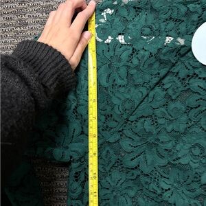 Elegant emerald lace blouse with intricate floral design. Ideal for special occasions. Complements both skirts and pants.
