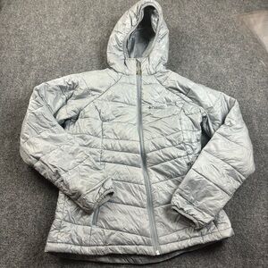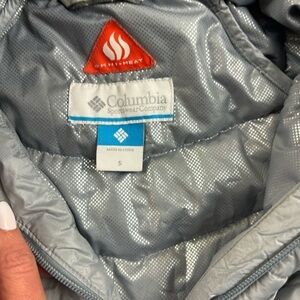 COLUMBIA Women’s Silver Puffer jacket Hooded Turbo Down 650TD Omni-heat Small