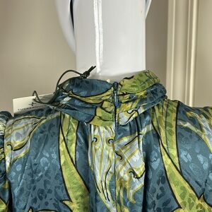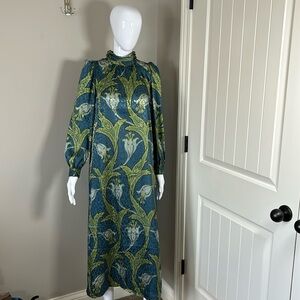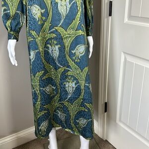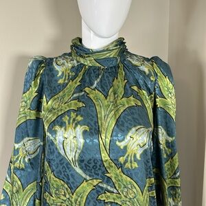 TUCKERNUCK Deco Floral Satin Faven Dress Green Deco Floral Midi Satin Sz S NEW