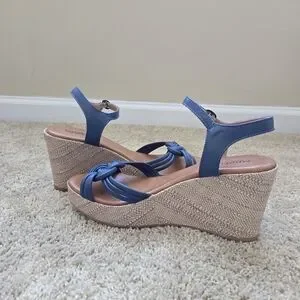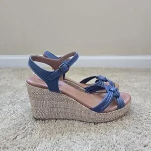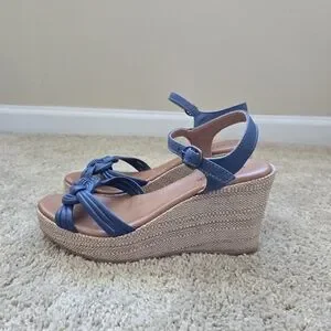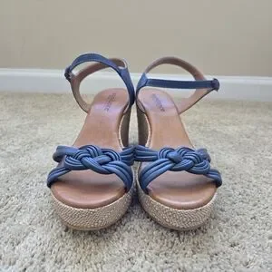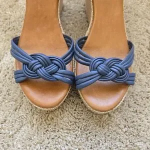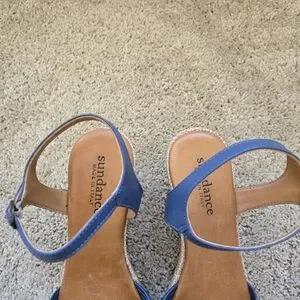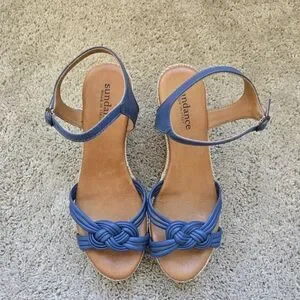 Sundance Wedge Sandals Womens EU 41 US 10-10.5 Blue Braided Leather