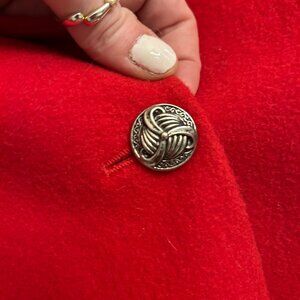 Rare find. Most of these blazers have gold buttons, but these silver ones are GORG. This vintage blazer is fabulous! 100% wool, vibrant color, deep pockets. Small blemish on the front (dry cleaning may be able to remove). This blazer is warm!