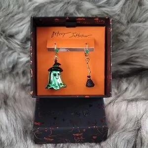 Betsey Johnson Emerald Ghost Earrings with Black Hat