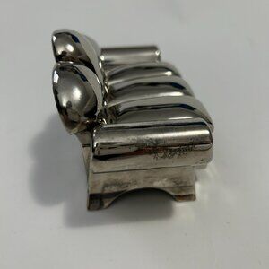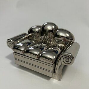 Vintage 1991 Godinger Silver Plated Sofa Couch Red Velvet Jewelry Box Lid mirror