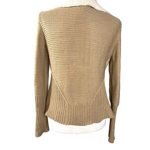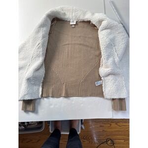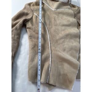 KNOX ROSE Womens Camel Beige Faux Shearling Suede Open Cardigan Sweater S NWOT