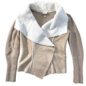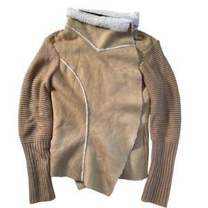 KNOX ROSE Women's Faux Shearling Suede Open Front Shaket, Cardigan, Sweater with Knit Arms and Back. New without tags NWOT