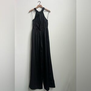 Misa Los Angeles Xandra Black Hammered Satin Wide Leg Halter Jumpsuit M Party