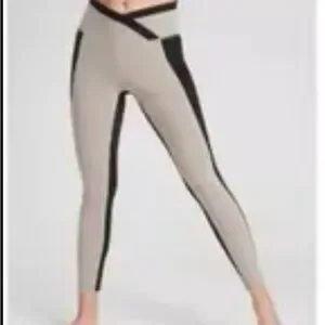 Comfortable leggings with a stylish black and cream design. Ideal for active wear.