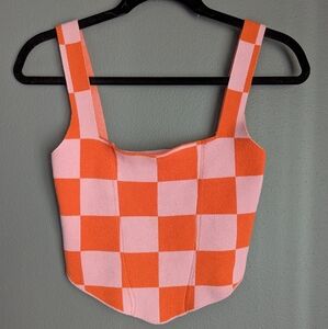 Peppermayo checkered pink and orange tank top size small/ medium 12.5 x 17-19