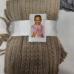 Acrylic, polyester, spandex. Great for winter gifts for yourself or loved ones. No holes or stains, new with tags.