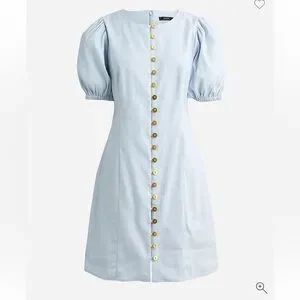J.Crew NWT linen blend button-down puff sleeve lined dress size 16