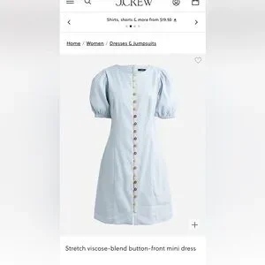 J.Crew NWT Stretch viscose/linen blend button front lined mini dress sz 16 BK977
