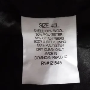Shell: wool/polyester/acrylic/other fibers; body/sleeve lining: polyester