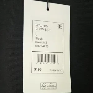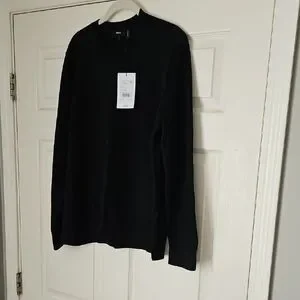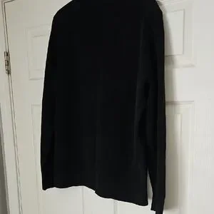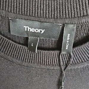 Elegant black crewneck sweater by Theory. Perfect for versatile styling. Soft and comfortable fabric. The 8th pic shows the weave on the front. The 9th pic shows the weave on the back and sleeves. The 7th pic shows the weave on the lower sleeves. The last pic shows the sleeve. The pit to pit approximate measurement is 23 1/2 inches. The overall approximate length measurement is 27 inches in front with the back being a little longer.