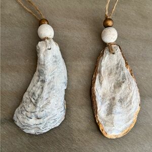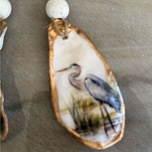 Heron Ceramic Oyster Shell Decoupaged Ornaments - Gold and White