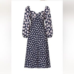This stunning dress by Sachin + Babi features a captivating blue and white polka dot pattern, perfect for a wedding guest or cocktail event. The sweetheart neckline and puff sleeves add a romantic touch, while the midi length offers a classic silhouette.