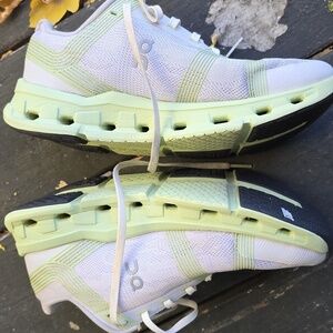 Discover comfort with On Running women's sneakers. Stylish white and light green design. Ideal for active wear.