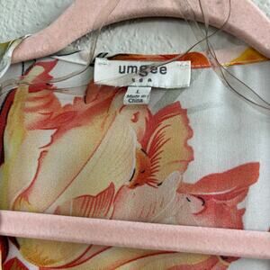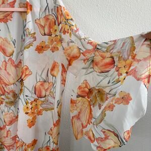 Umgee Lightweight White and Orange Floral Bell Sleeve Duster Kimono Size Large