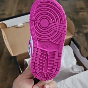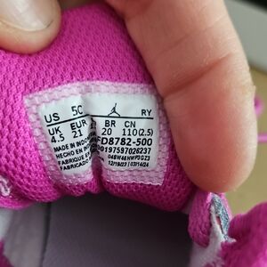 Stylish Jordan sneakers with a white base and vibrant pink details. Perfect for active kids.