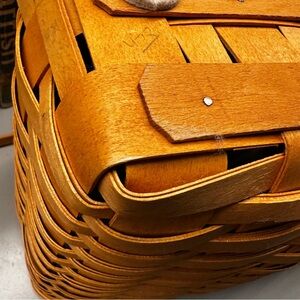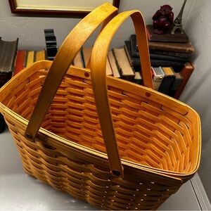 Vintage 1999 Longaberger Market Basket Woven Tan double swing Handled magazine