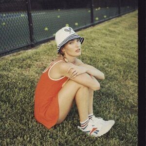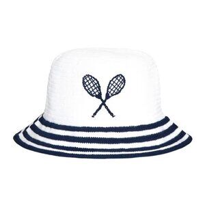 from our tennis capsule with luisa via roma, a handmade knit bucket hat made in a soft stretchy knit.