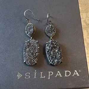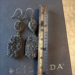 New, used for display only Artisan design, druzy drops set in brass Wire hook 2.25” Retail $49
