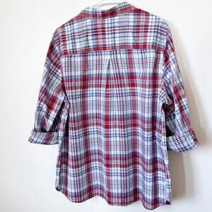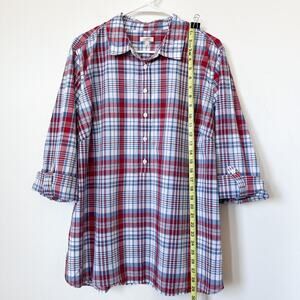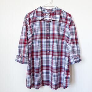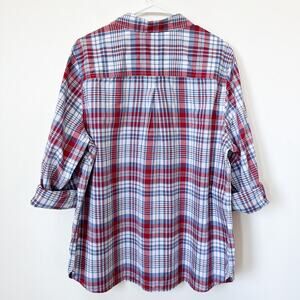 Talbots Woman 2X Red Blue Plaid Button Up Shirt Rolled Sleeve Summer Lightweight