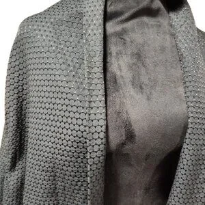 This cloak is beautiful on the outside. Unfortunately, the inside lining should be replaced due to stains, and a small hole on the inside right , towards the bottom. See pictures. Has Italian Novelty Print Pink Lining .There is no material tag in the lining, and I can't find one like this online. I found other coats made by Cee-Dee and they all seem to be from the 50's and 60's. The outer material is in a honeycomb textured pattern and the outside is in great condition. Based off the fitting on my mannequin, I determined it is around a size 6-8. My mannequin is a size 6 and there was still plenty of movement. A great project to have such a unique , dramatic, piece.
