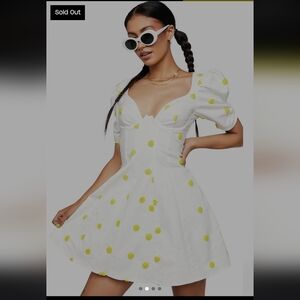 cuz you light up the room. This mini dress comes in a linen construction, with a textured polka dot print, puff sleeves, an underwire bust, an open back with a scrunched elastic band, and an invisible zip closure.