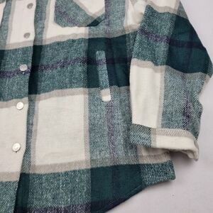NWOT soft heavy green and cream plaid utility pocket oversized shirt jacket