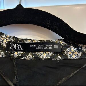 Zara Smocked Ruffle V Neck Mini Dress Long Sleeved Metallic Thread Black