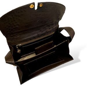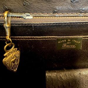 Gucci Vintage Circa 60’s Brown Ostrich leather & Braided Gold Hardware Detail Shoulder Bag
