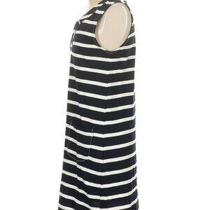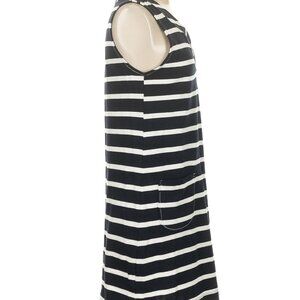 The Philosophy Navy White Striped Dress offers a classic sleeveless style with a comfortable cotton blend. Ideal for casual outings, this dress features a regular fit and knee-length design.