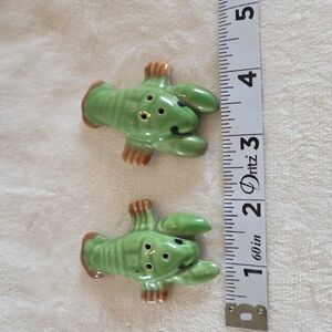 Vintage green ceramic lobster crawdad salt and pepper shakers ocean beach