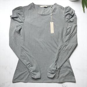 NWT - Rebecca Taylor Ruched Long Sleeve Tee Shirt in Grey White Striped