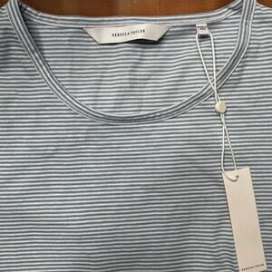 New with tags Rebecca Taylor ruched long sleeve tee shirt in grey and white stripes. Size M. This stylish and comfortable tee is perfect for any casual occasion. The ruched detailing adds a touch of elegance, making it a versatile addition to your wardrobe. Don't miss out on this must-have piece!