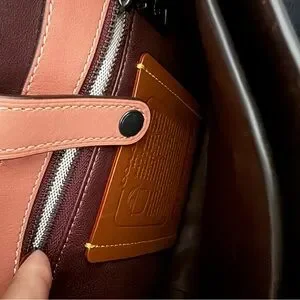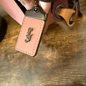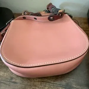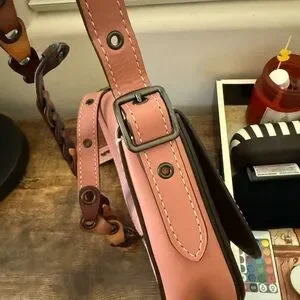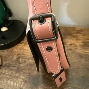 Chic pink crossbody bag by Coach. Features a stylish multicolor strap. Perfect for any occasion.