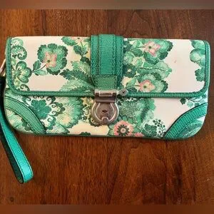 Burberry London Green and Pink Floral Wristlet