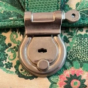 Burberry London canvas wristlet. Elegant wristlet with green and pink hues. Ideal for chic outings. Minor discoloration shown in photos.